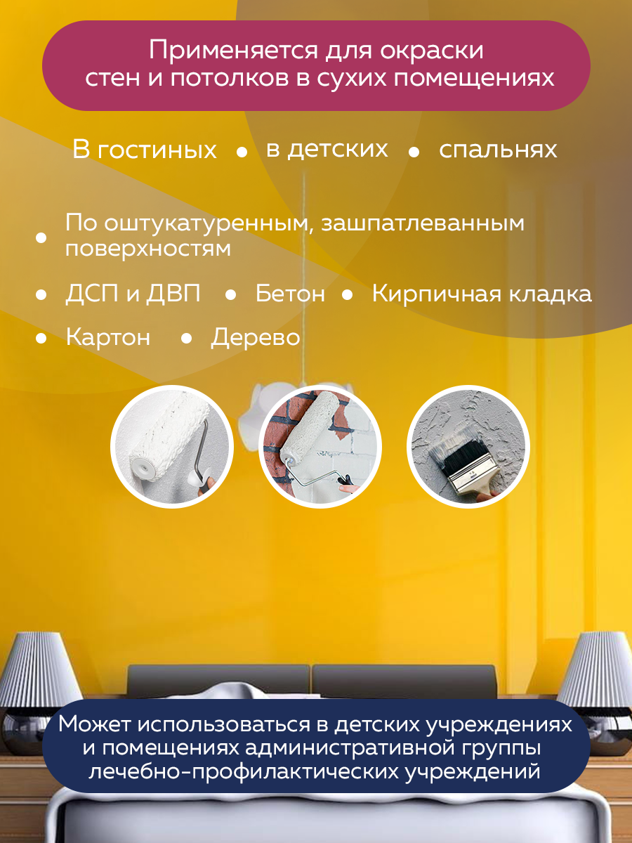 | Плюсы: | Хорошо ложится. Отличная укрывистость. Подходит для влажных помещений. |