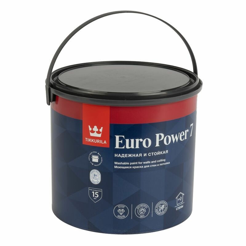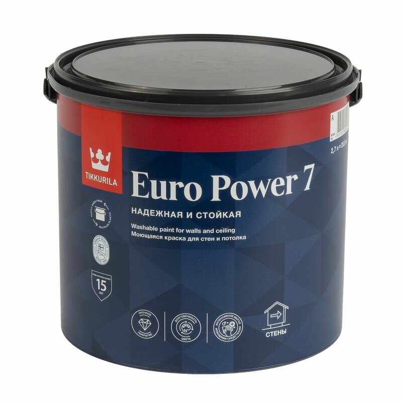 TIKKURILA EURO POWER 7 краска моющаяся для стен и потолка, матовая, база A (2,7л)
