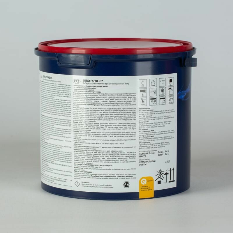 Краска моющаяся для стен и потолков EURO POWER-7 2,7 Л