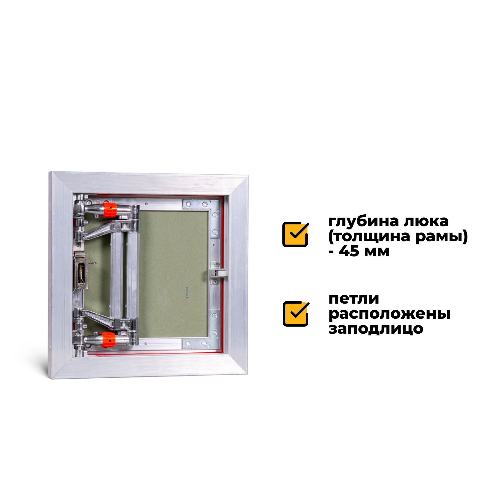 Люк ревизионный под плитку нажимной Практика Евроформат АТР 400-500 мм, алюминиевый, скрытый