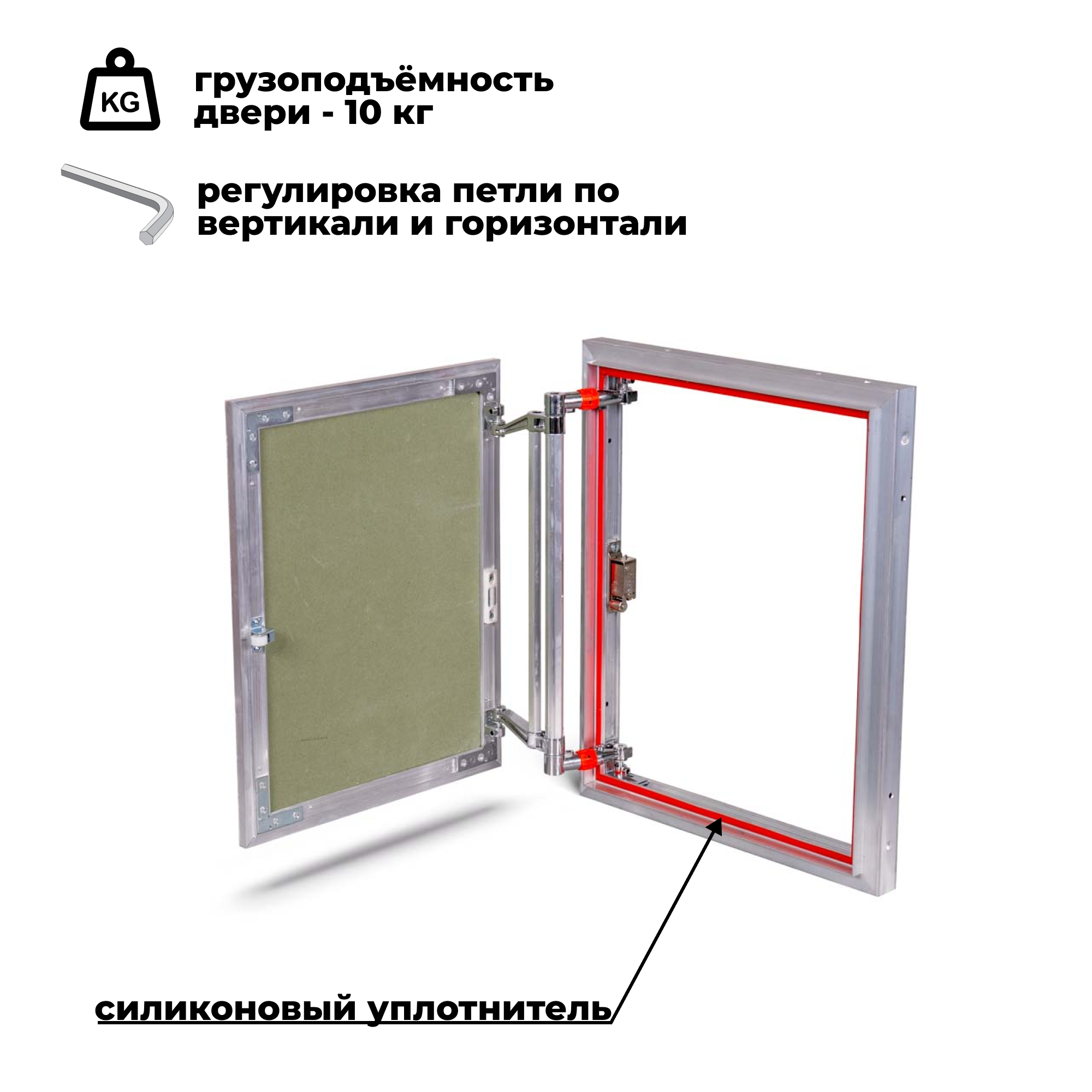 Скрытый ревизионный люк 40х60 (ШхВ) под плитку «Евроформат» Практика, нажимной, распашной