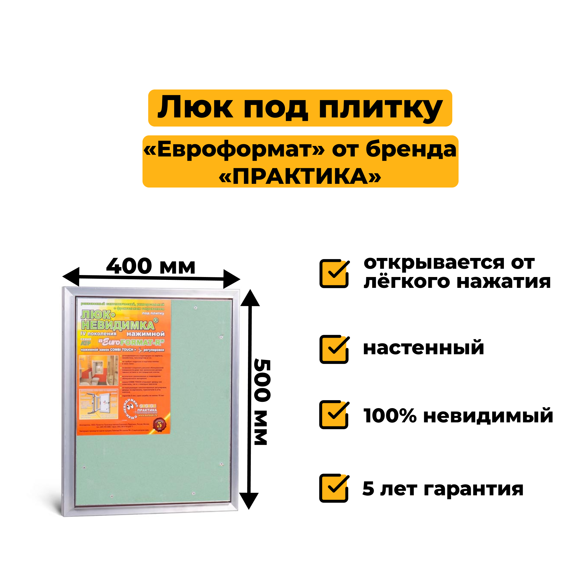 Ревизионный люк Формат КН 40–50 настенный под плитку ПРАКТИКА