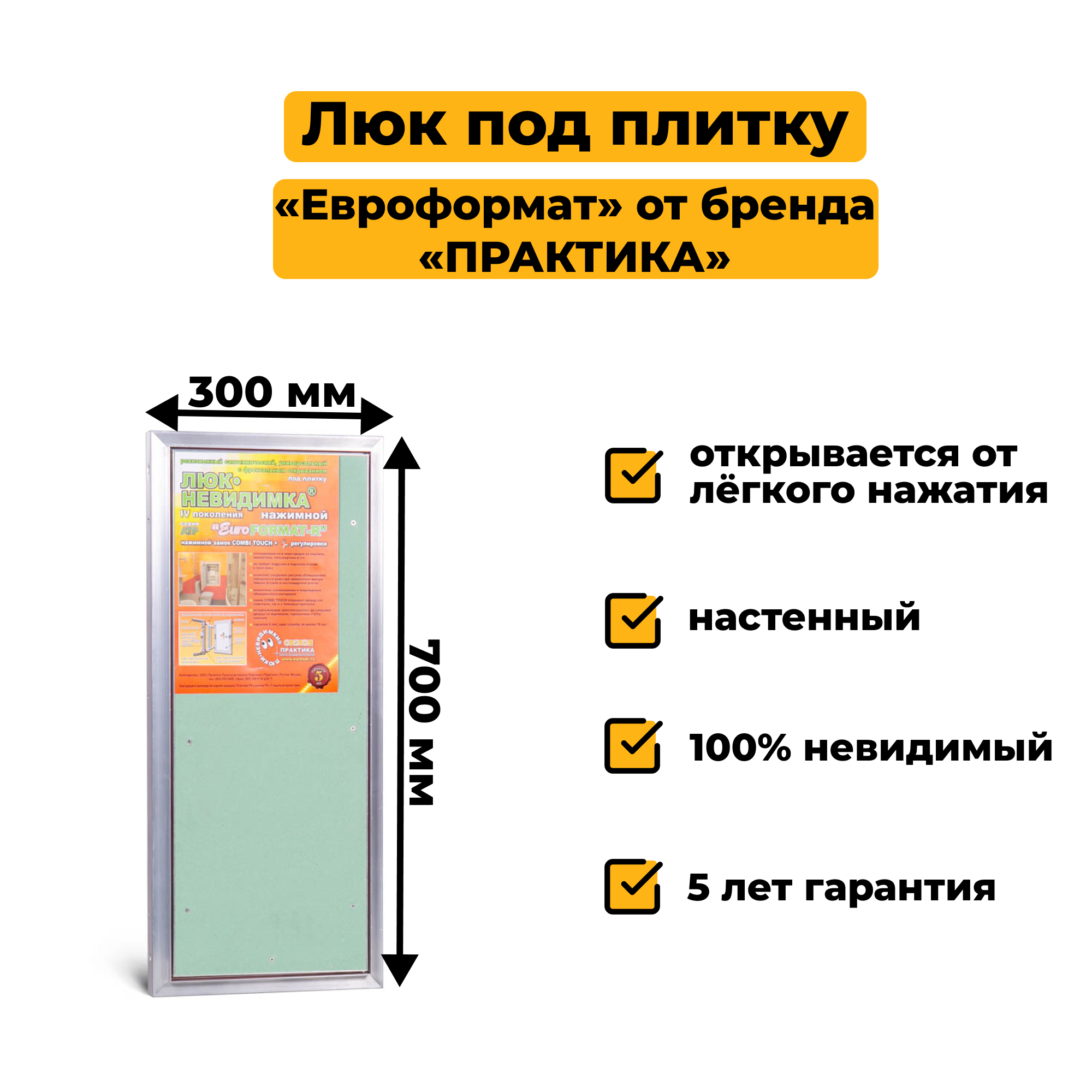СохранитьСкрытый ревизионный люк 30х70 (ШхВ) под плитку «Евроформат» Практика, нажимной, распашной интересное: