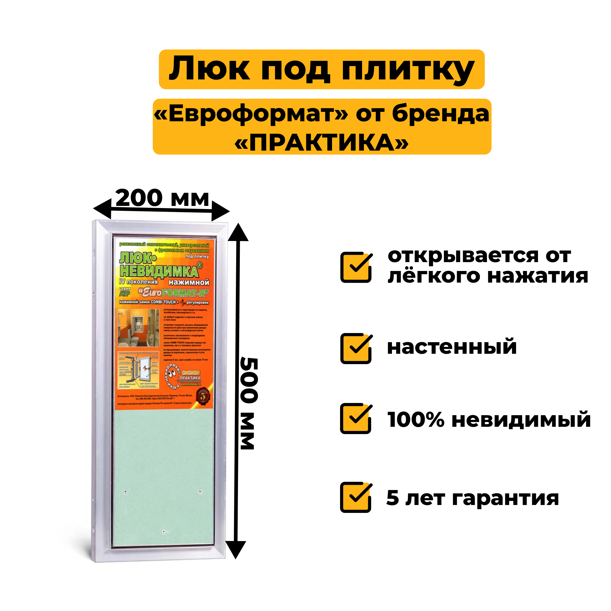 СохранитьСкрытый ревизионный люк 20х50 (ШхВ) под плитку «Евроформат» Практика, нажимной, распашной интересное: