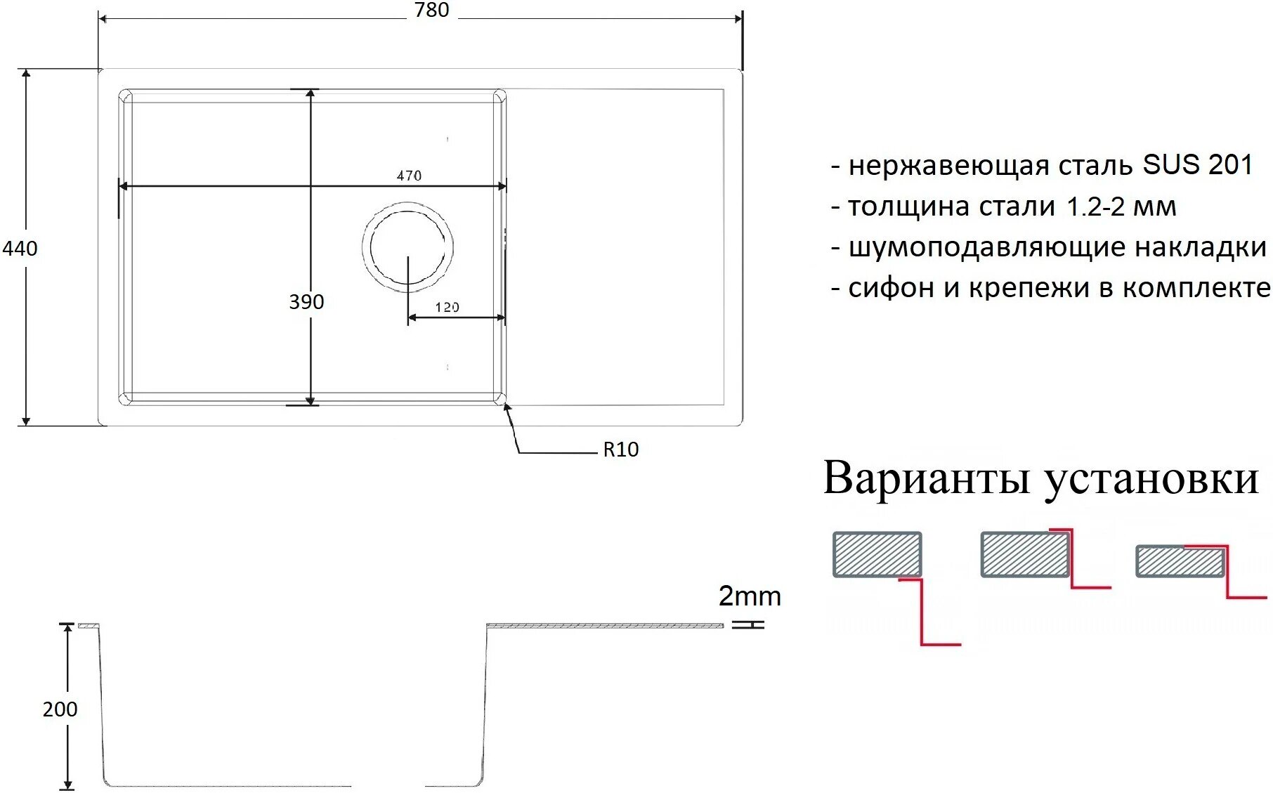 | Установка | врезная |
