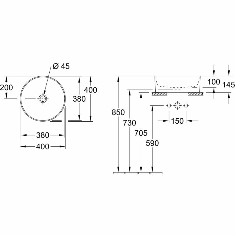 | Диаметр сливного отверстия | 45 мм |