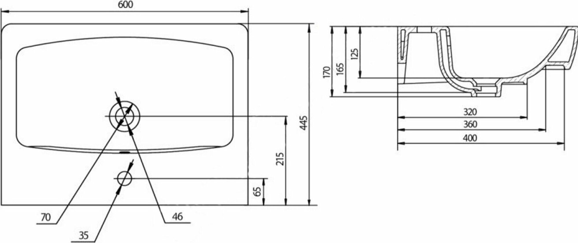 | Расположение отверстия под смеситель | в центре |