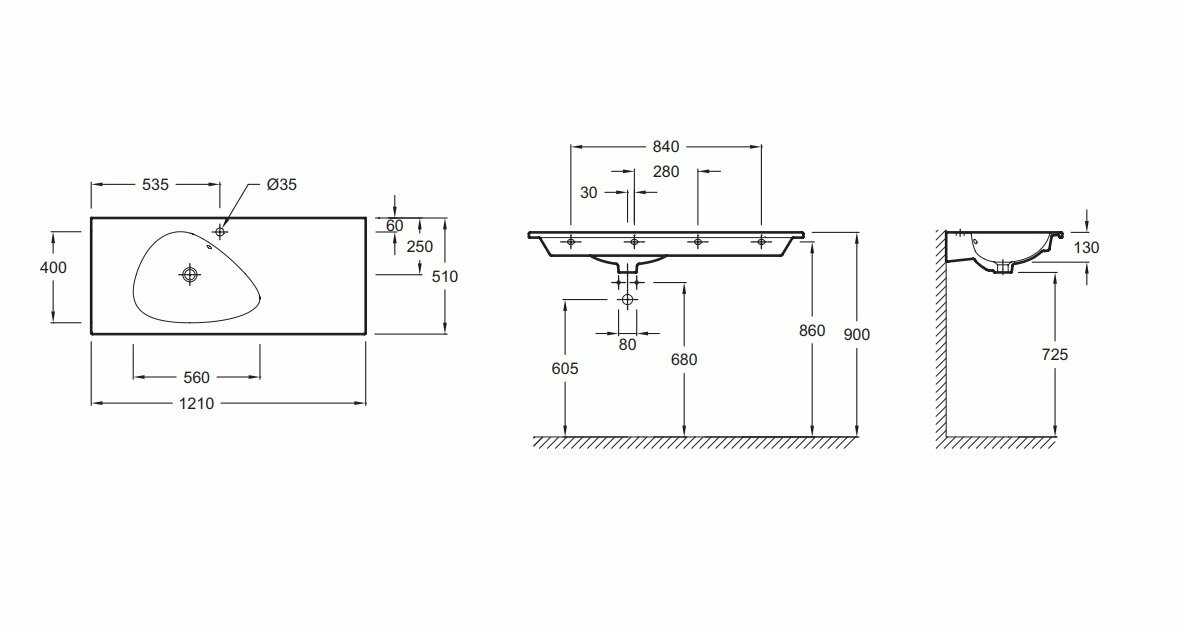 Раковина Jacob Delafon Nouvelle Vague 121 см EXAP112-Z-MG2