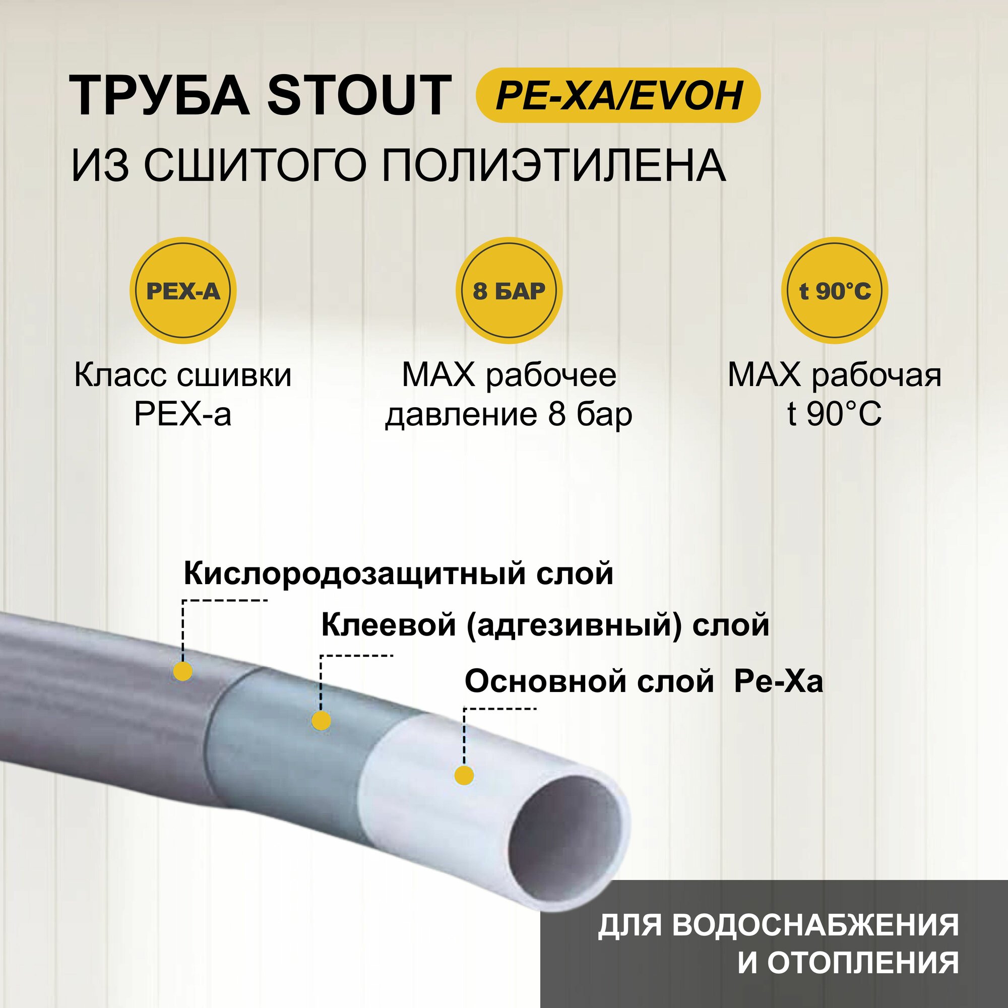 STOUT Труба из сшитого полиэтилена PE-Xa/EVOH 25х3,5 (бухта 50м) серая универсальная