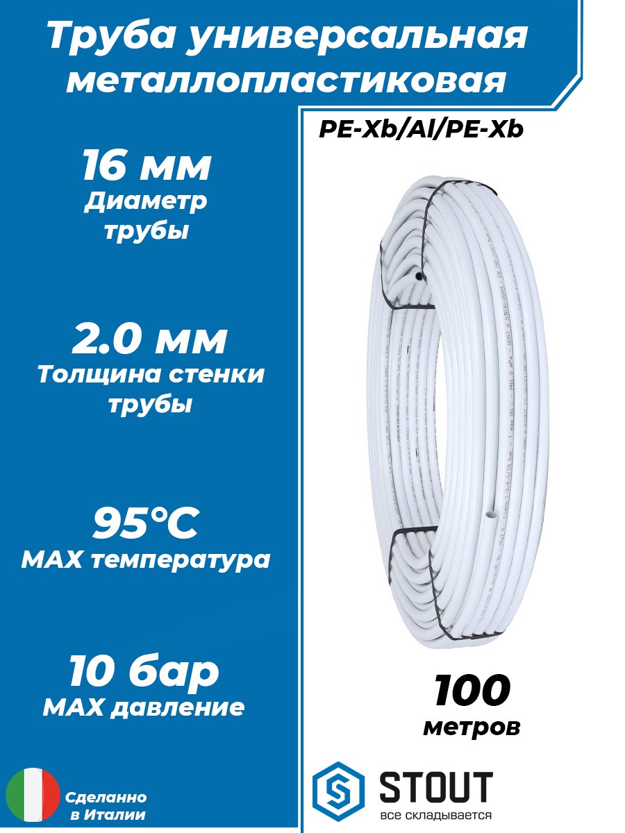 STOUT Труба 16 x 2.0 (100) PEX-AL-PEX металлопластиковая (Завод: APE. Italy)