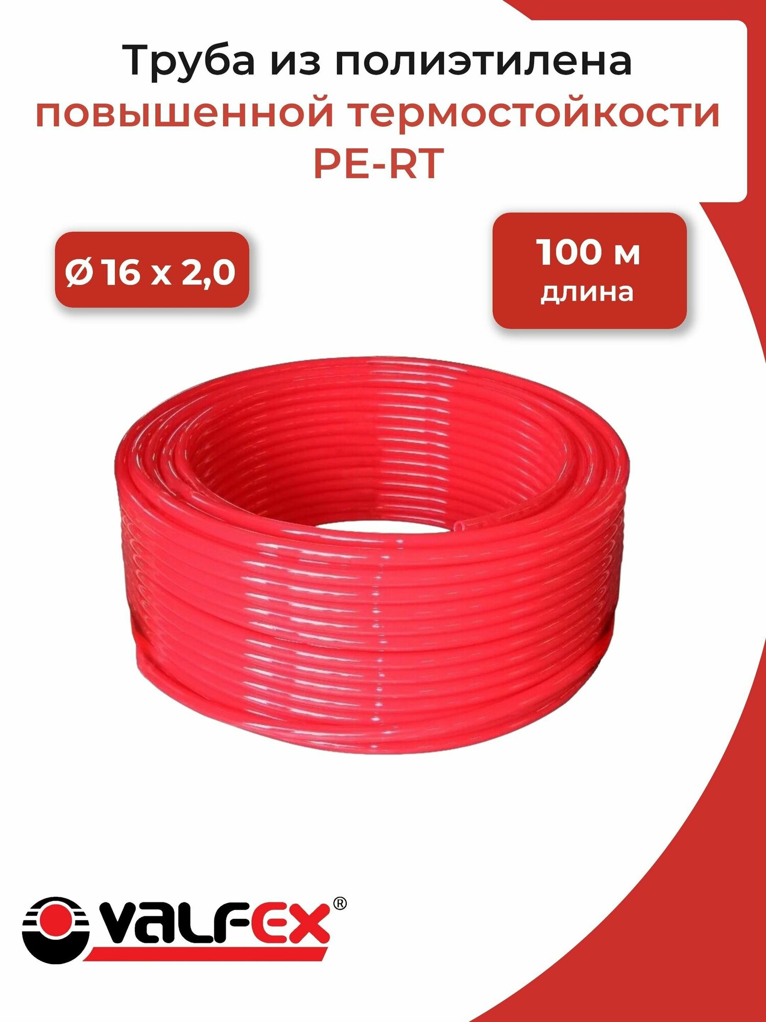 Труба PE-RT 16х2.0 красн. (уп.100м) VALFEX 10104116Р-0100