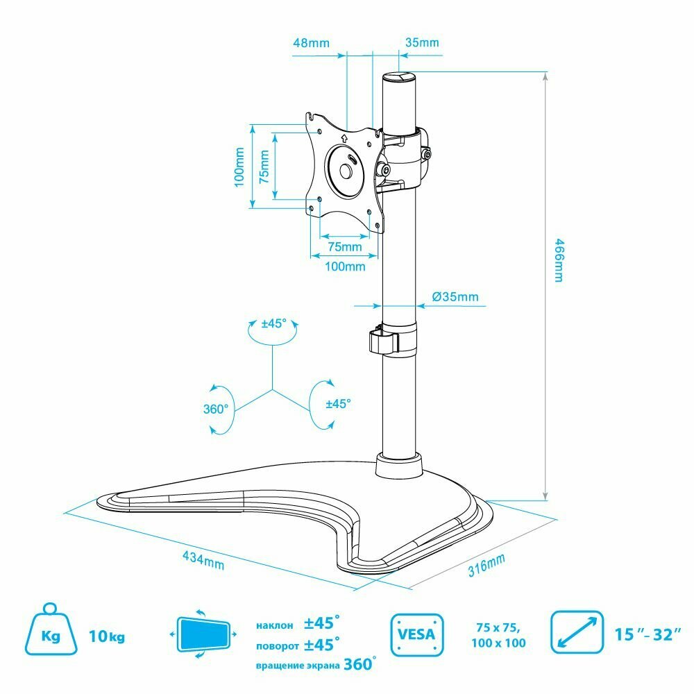 Кронштейн ARM Media LCD-T51 Черный для мониторов 15-32 настольный поворот и наклон max 10 кг