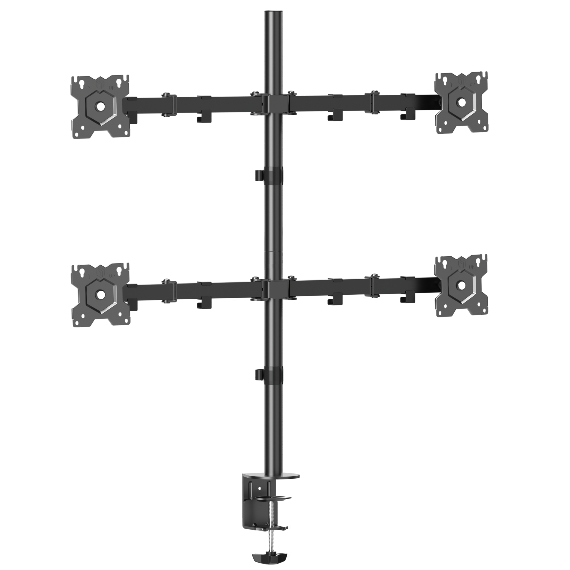 Кронштейн для 4-х мониторов ONKRON/ 10-32 макс. 100*100, струбцина, наклон -85?+90? поворот 360?, вылет от основания 0-385мм, вертикальное перемещение