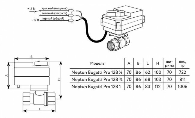 Кран шаровой с электроприводом Neptun Bugatti Pro 1/2 12В 2153566