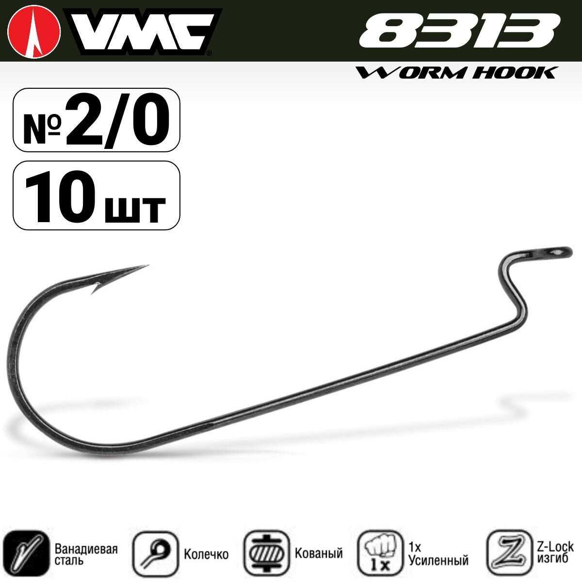 VMC, Крючки 8313 BZ, оффсетные, 10шт., №2/0, арт.8313BZ-2/0-D