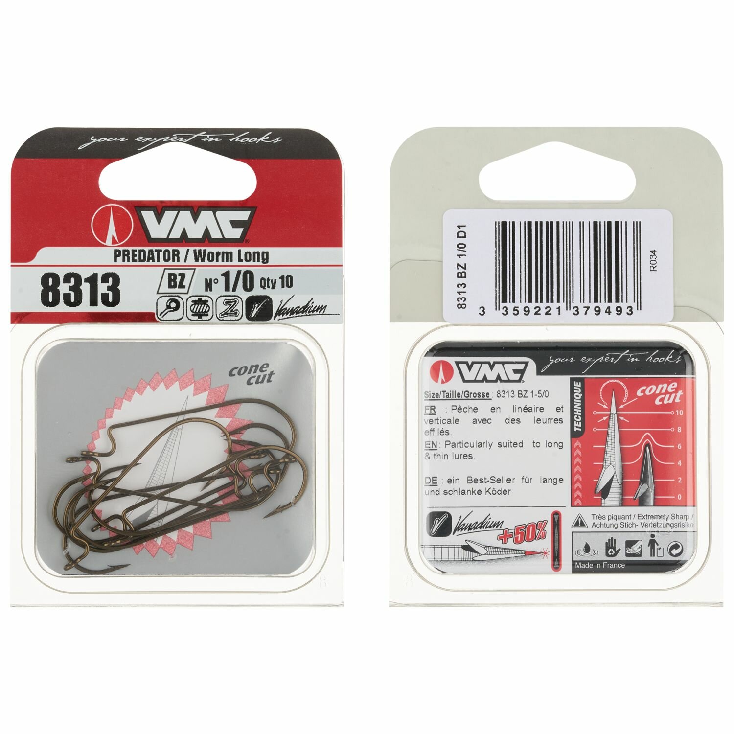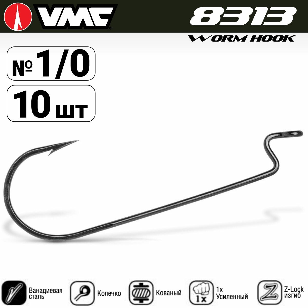 VMC, Крючки 8313 BZ, оффсетные, 10шт., №1, арт.8313BZ-01-D