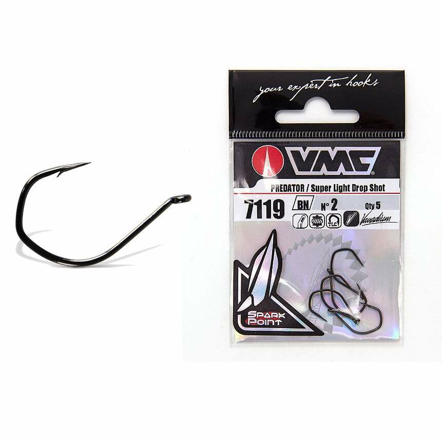 Крючок одинарный рыболовный VMC Drop Shot 7119 BN (черный никель), №02, 10штук в упаковке