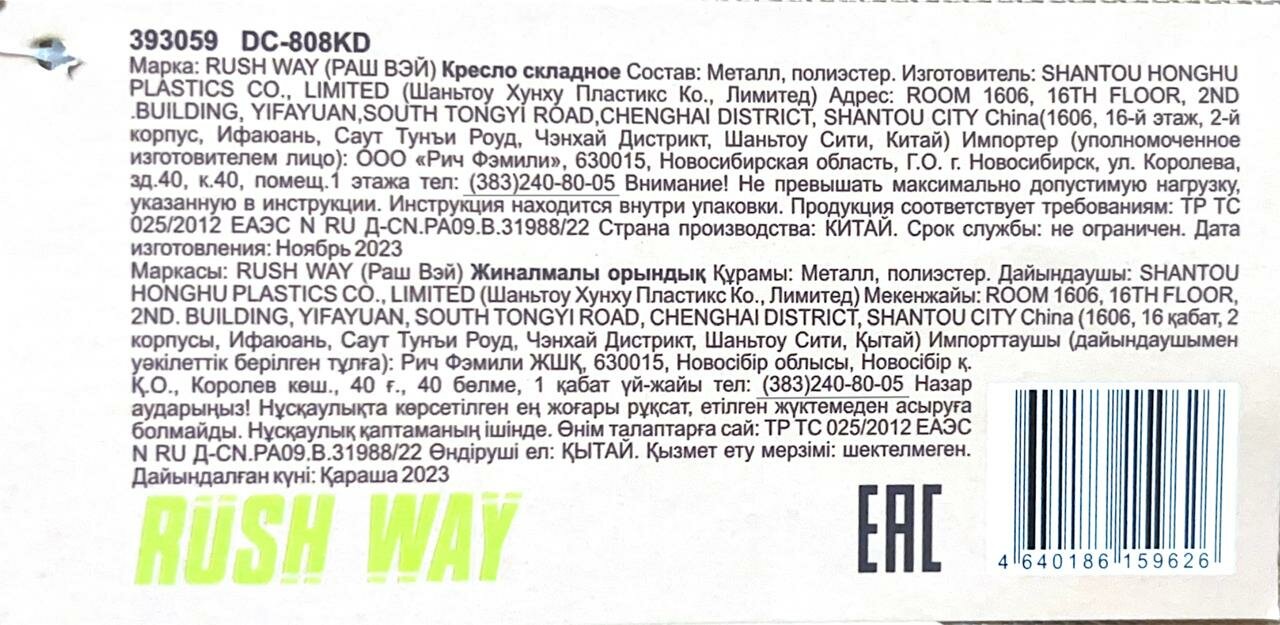 Купить Кресло туристическое складное Rush Way для кемпинга