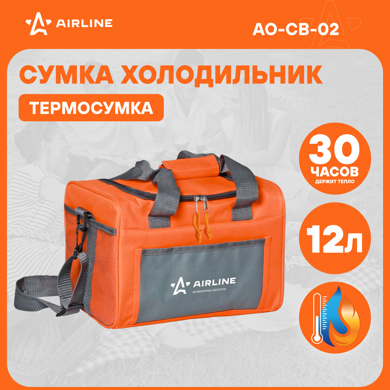 AIRLINE Сумка-холодильник AO-CB 12 л оранжевый/серый 0.4 кг 21 см 21 см 30 см