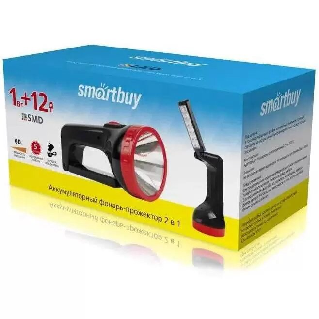 Аккумуляторный светодиодный фонарь-прожектор Smartbuy Sbf-303-k 2 в 1 1W+12 SMD черный/красный .