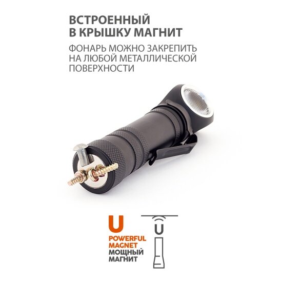Защита от влаги, выдерживает кратковременное погружение в воду Магнит на пятке Яркий, т?плый световой поток |