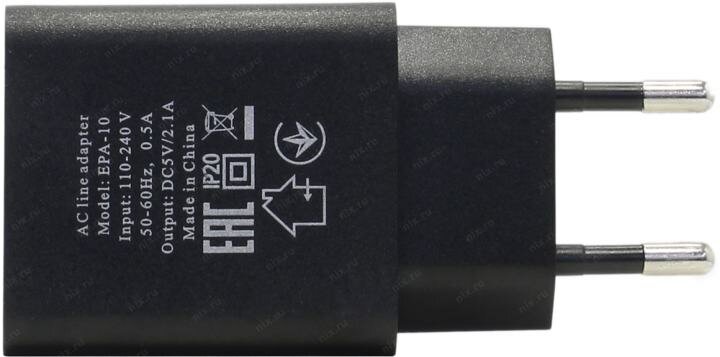 Сетевое зарядное устройство EPA-10, 1 USB, 2.1 А, чёрное