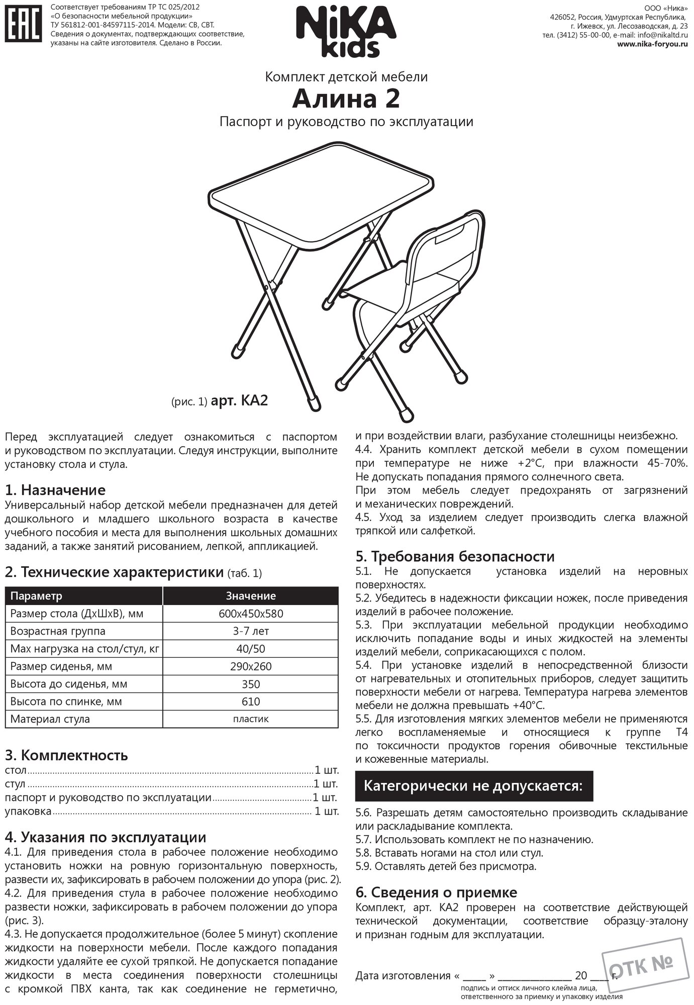 | Плюсы: | сборка отличного качества устойчивый и стол и стул |