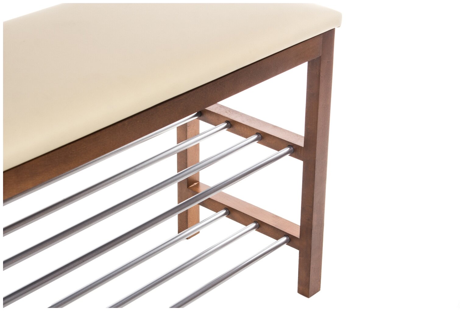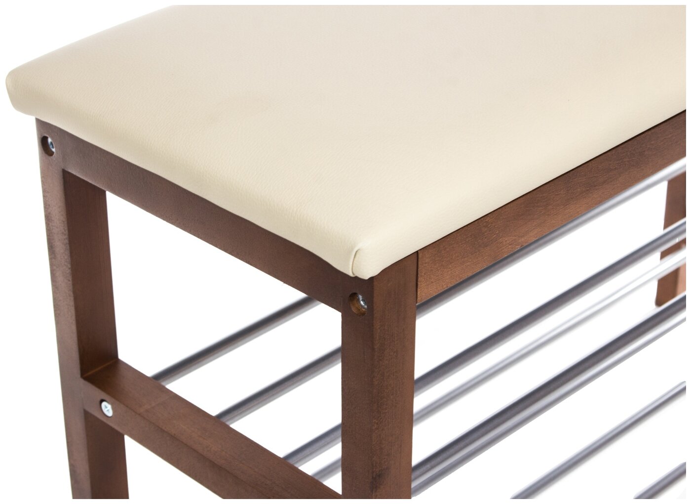 Банкетка-полка для обуви SR-0628, 760х310х490 мм, 2 отделения, дерево/металл, темный орех/хром
