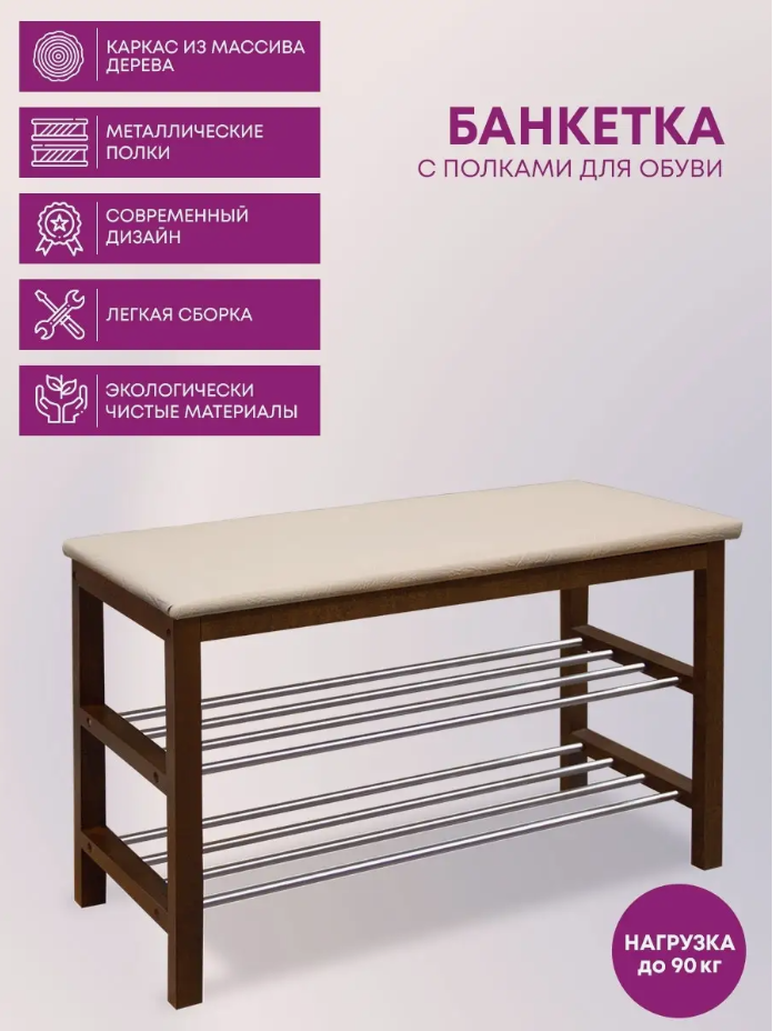 | Плюсы: | Очень удобная, и стильная обувница, отличное сочетание металл, дерево и экокожа. |