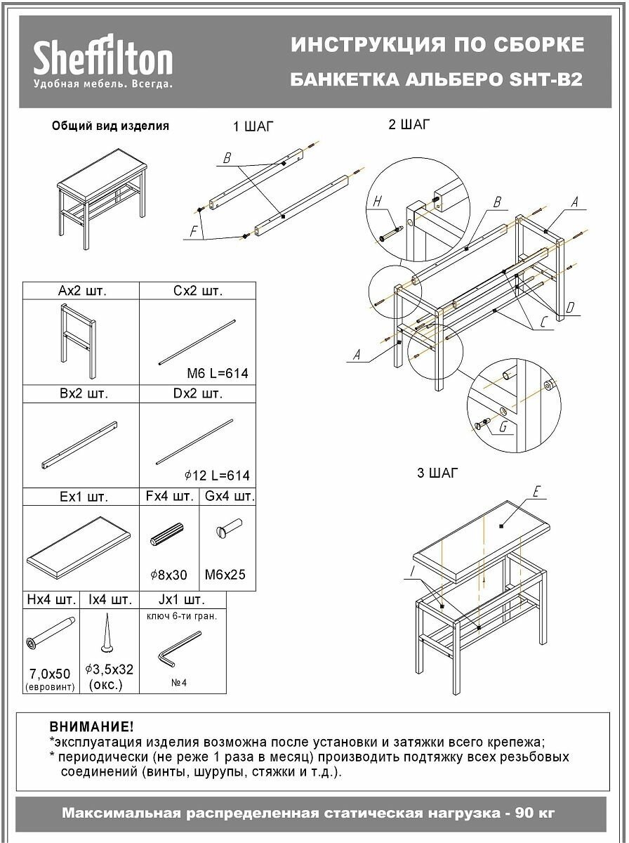 Собирается элементарно. За час. Многие пишут, что ее недостаток - это конструкция. Не соглашусь. Нужно полностью и до конца завинчивать все болты и саморезы, тогда банкетка будет стоять жестко. У меня нет и малейшего намека на неустойчивость и хлипкость конструкции. Применяйте силу при сборке и будет вам счастье! |