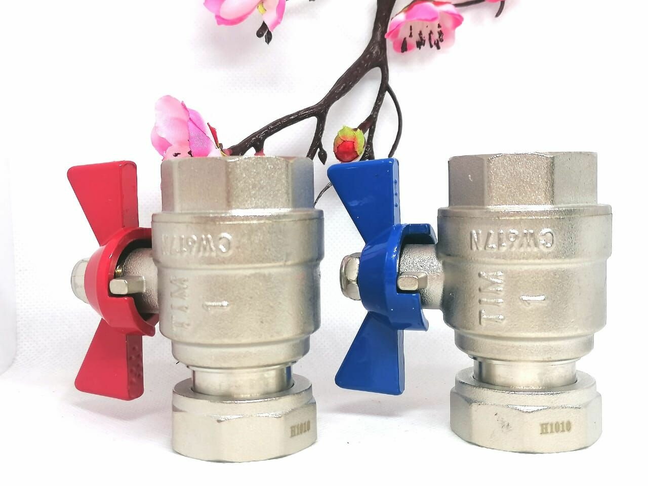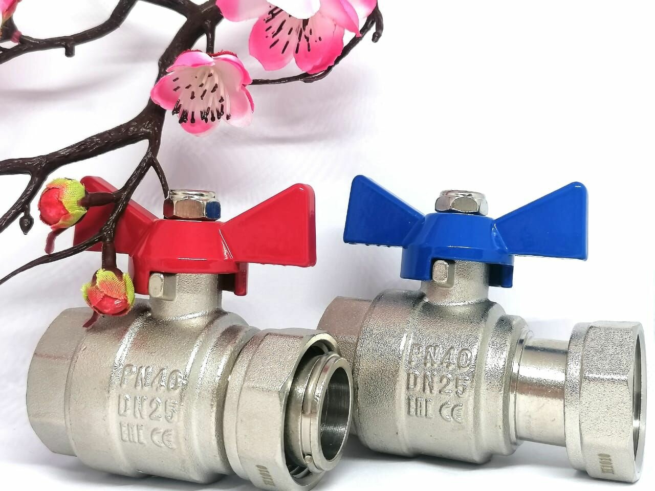 Кран шаровой с накидной гайкой (красный+синий)(пара) 1" M328-4