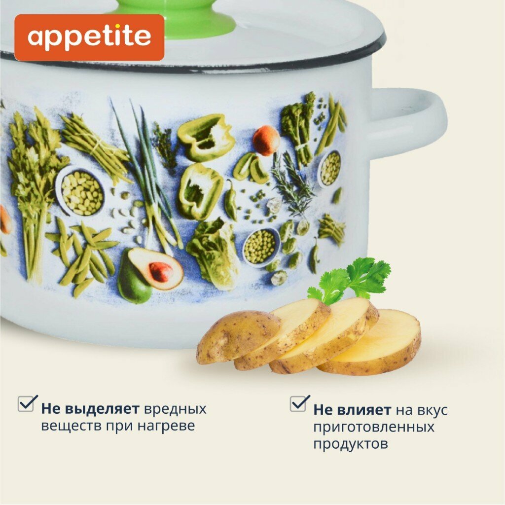 Кастрюля эмалированная сталь, 4.5 л, с крышкой, крышка сталь, Appetite, Свежая зелень, 1с17с, индукция