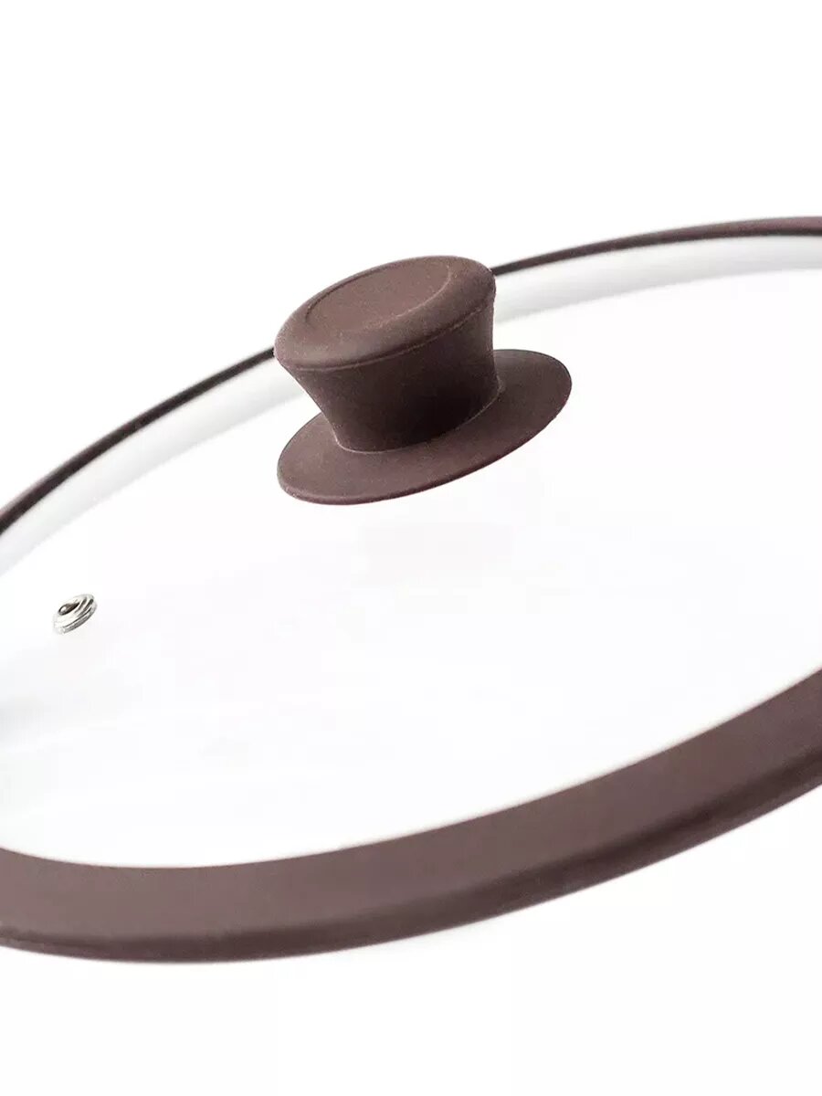 Купить Крышка TimA стеклянная с силиконовым ободком, д.22 см, с пароотводом, коричневая