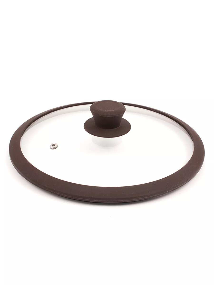 Крышка стеклян.с силикон.ободком 28 см (коричневая) (4828BR)