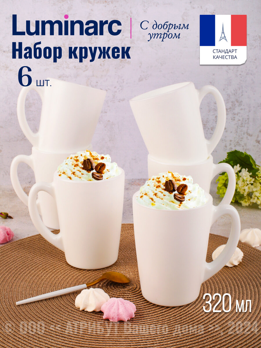 Купить Кружка Luminarc "С добрым утром" 320 мл, 6 штук, белая, с ручкой