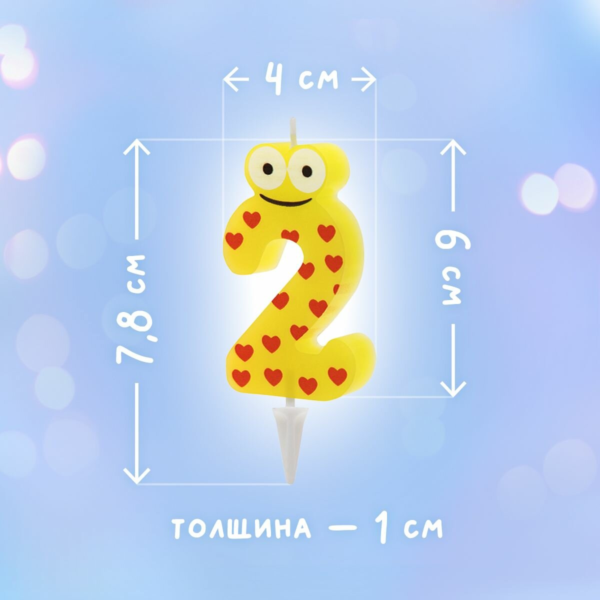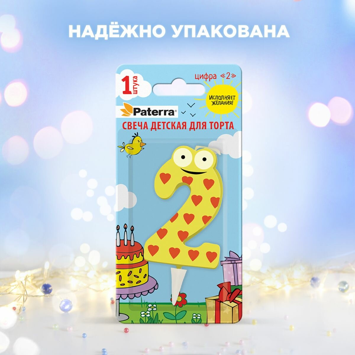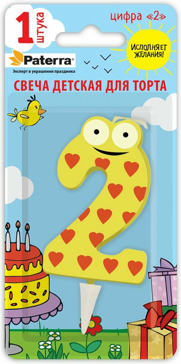 Свеча детская для торта PATERRA, цифра 2 (1шт.в упаковке)