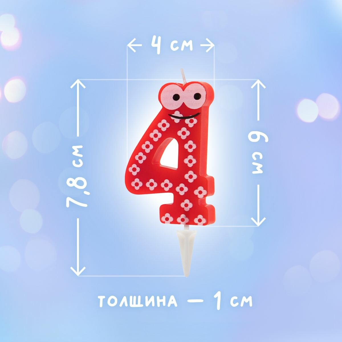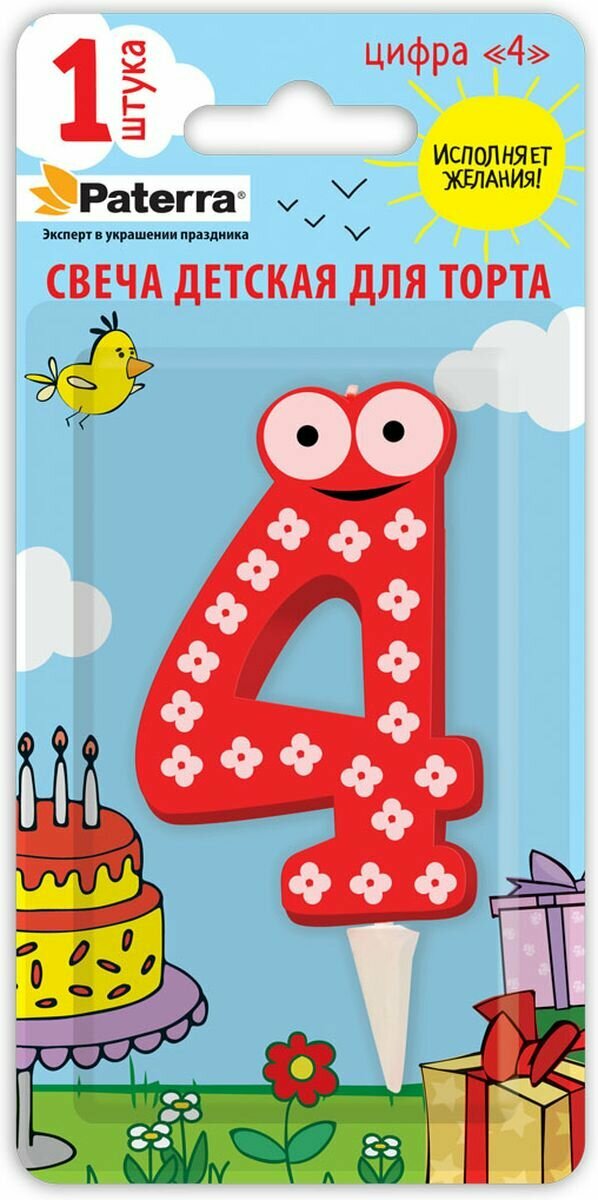 Свеча детская для торта PATERRA, цифра 4 (1шт.в упаковке)