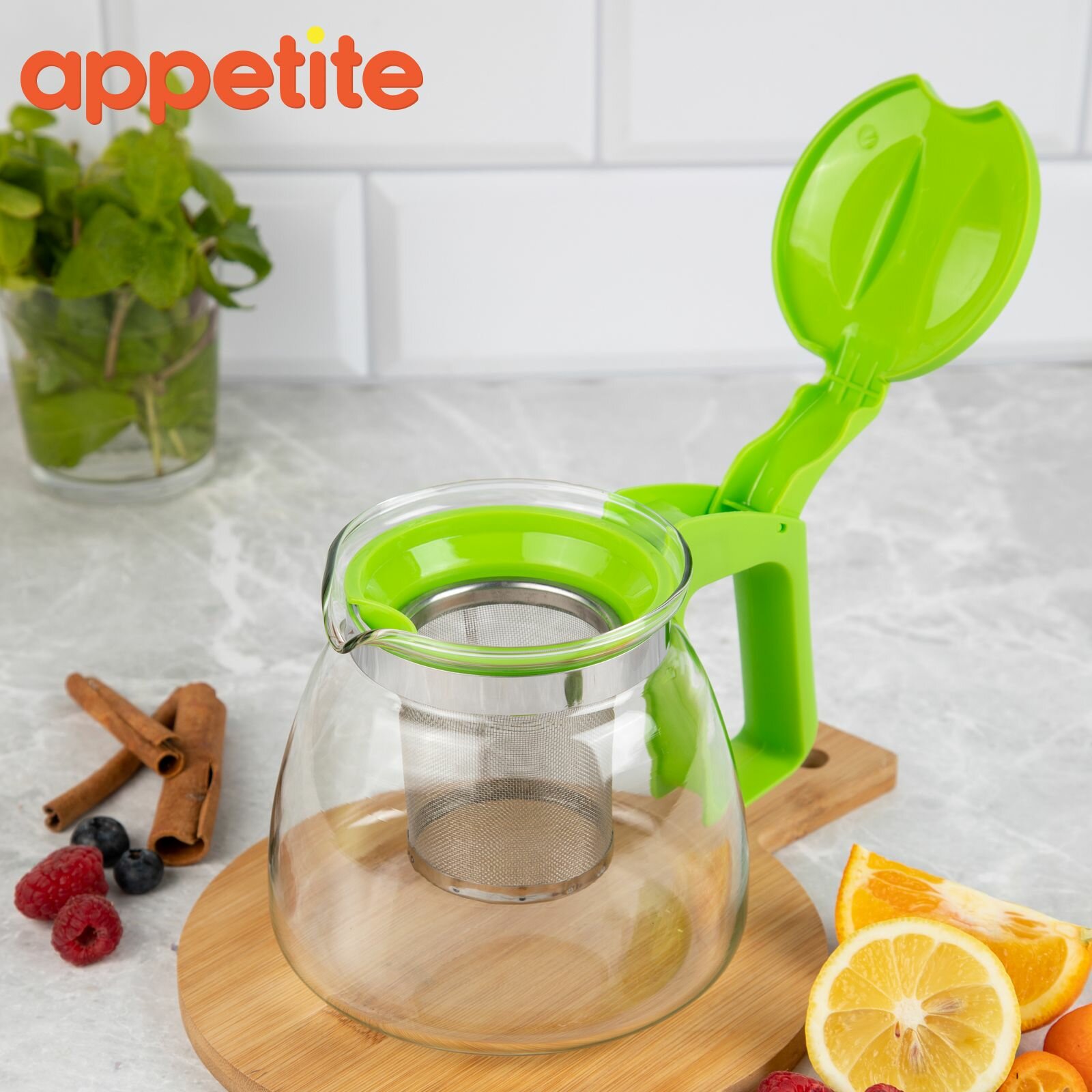 Заварочный чайник Appetite стекло, с фильтром, зеленый, 0,9 л (500078948) интересное: