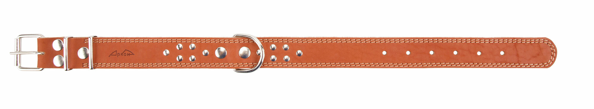 Ошейник аркон кожаный для собак однослойный, украшения, двойная строчка, коньячный (46-60 см/35 мм)