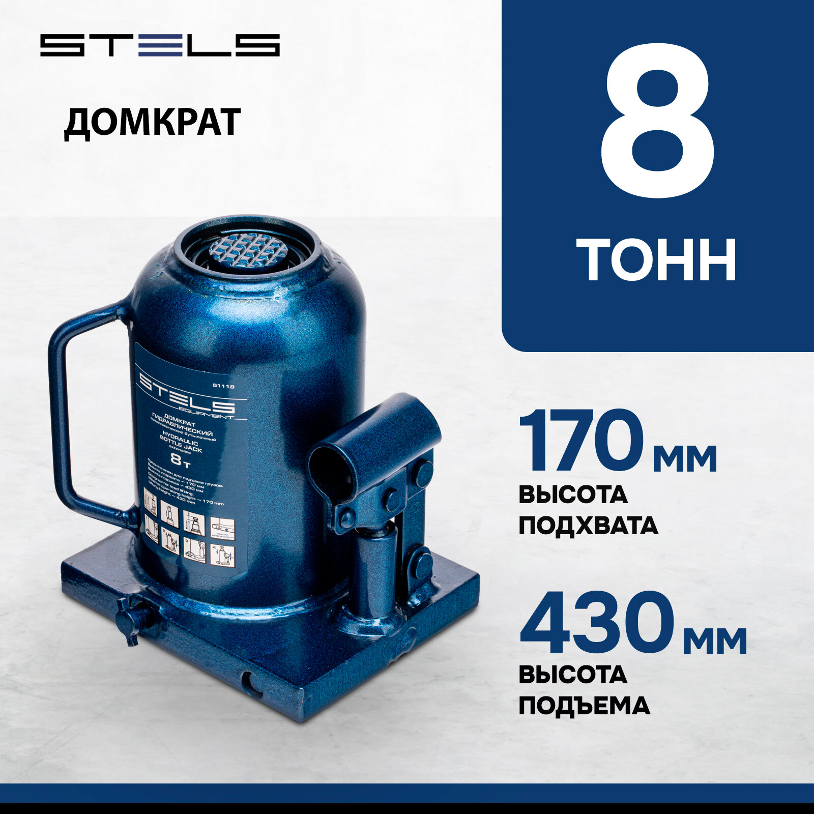 Домкрат гидравлический бутылочный телескопический, 8 т, H подъема 170-430 мм Stels, ( 51118 )