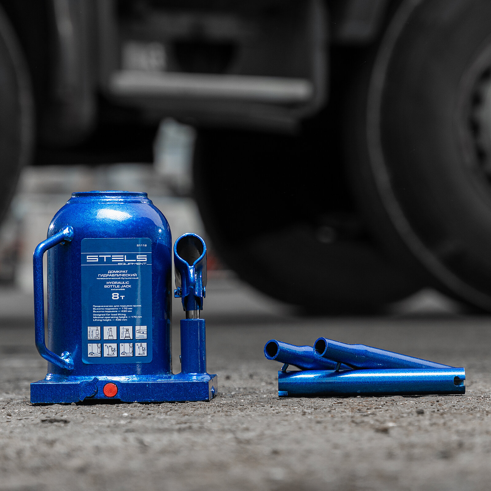 Домкрат гидравлический бутылочный телескопический, 8 т, h подъема 170430 мм// Stels 51118 .