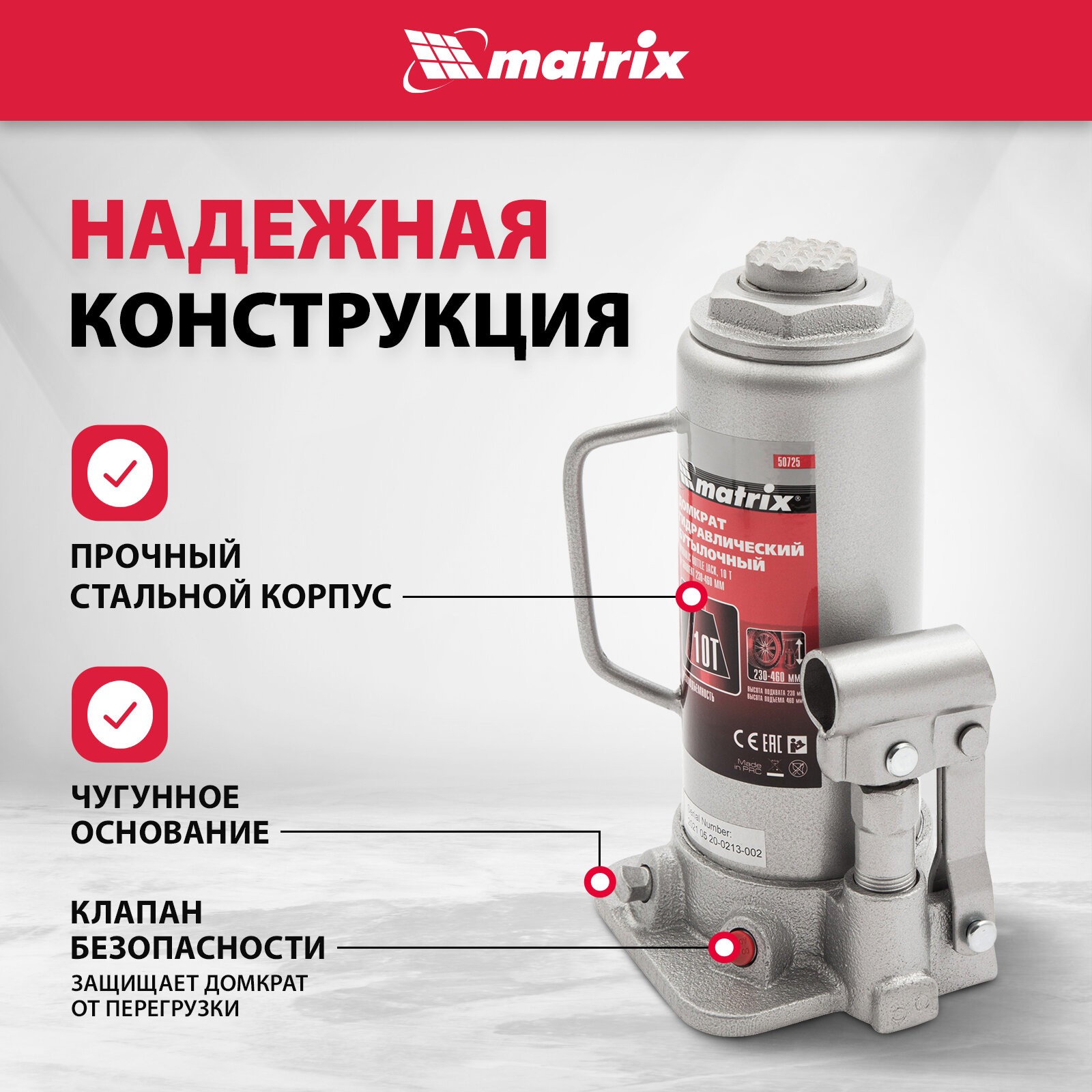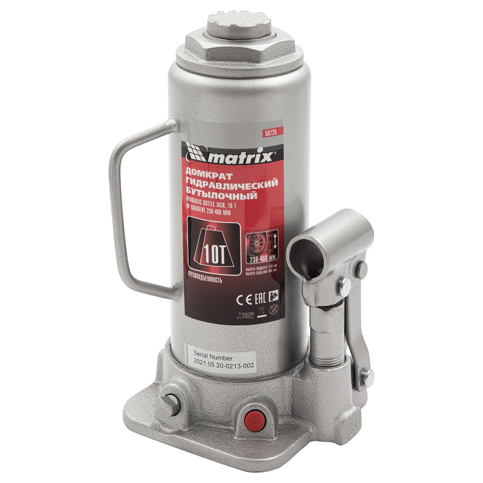 Домкрат Гидравлический Бутылочный, 10 Т, Высота Подъема 230-460 Мм Matrix Master 50725 Matrix 50725 Matrix арт. 50725