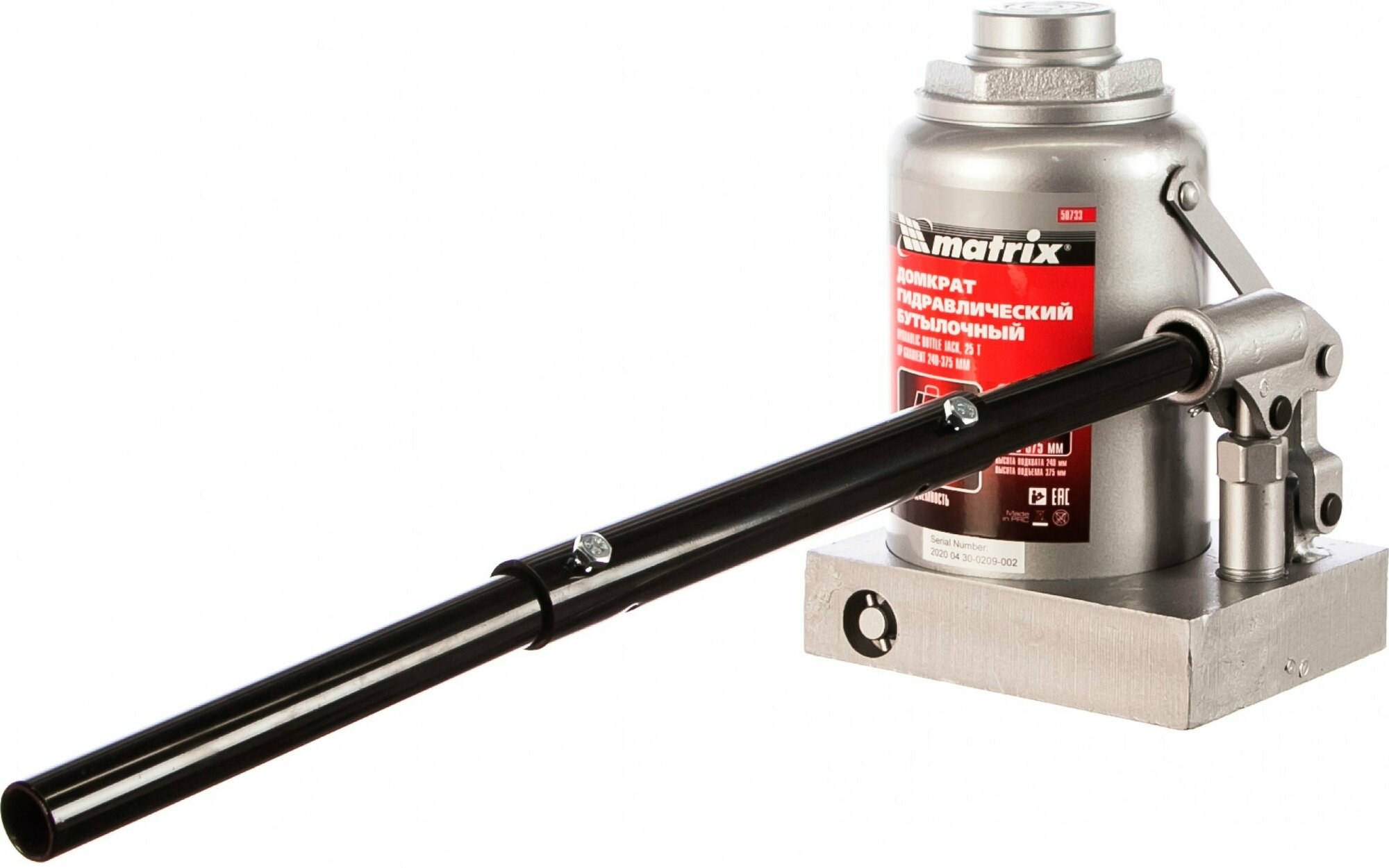 Домкрат гидравлический бутылочный Matrix 25 т, h подъема 240–375 мм 50733