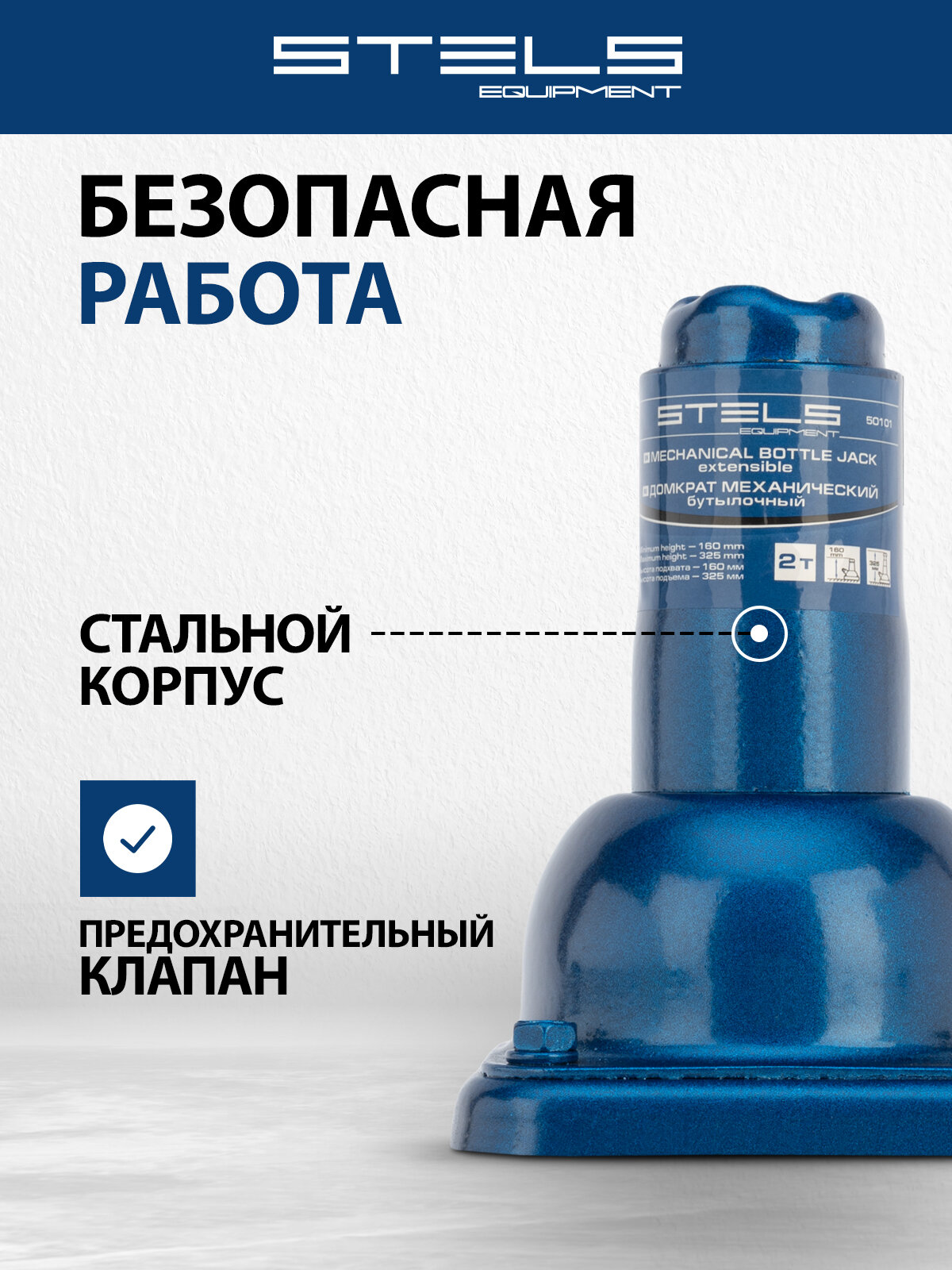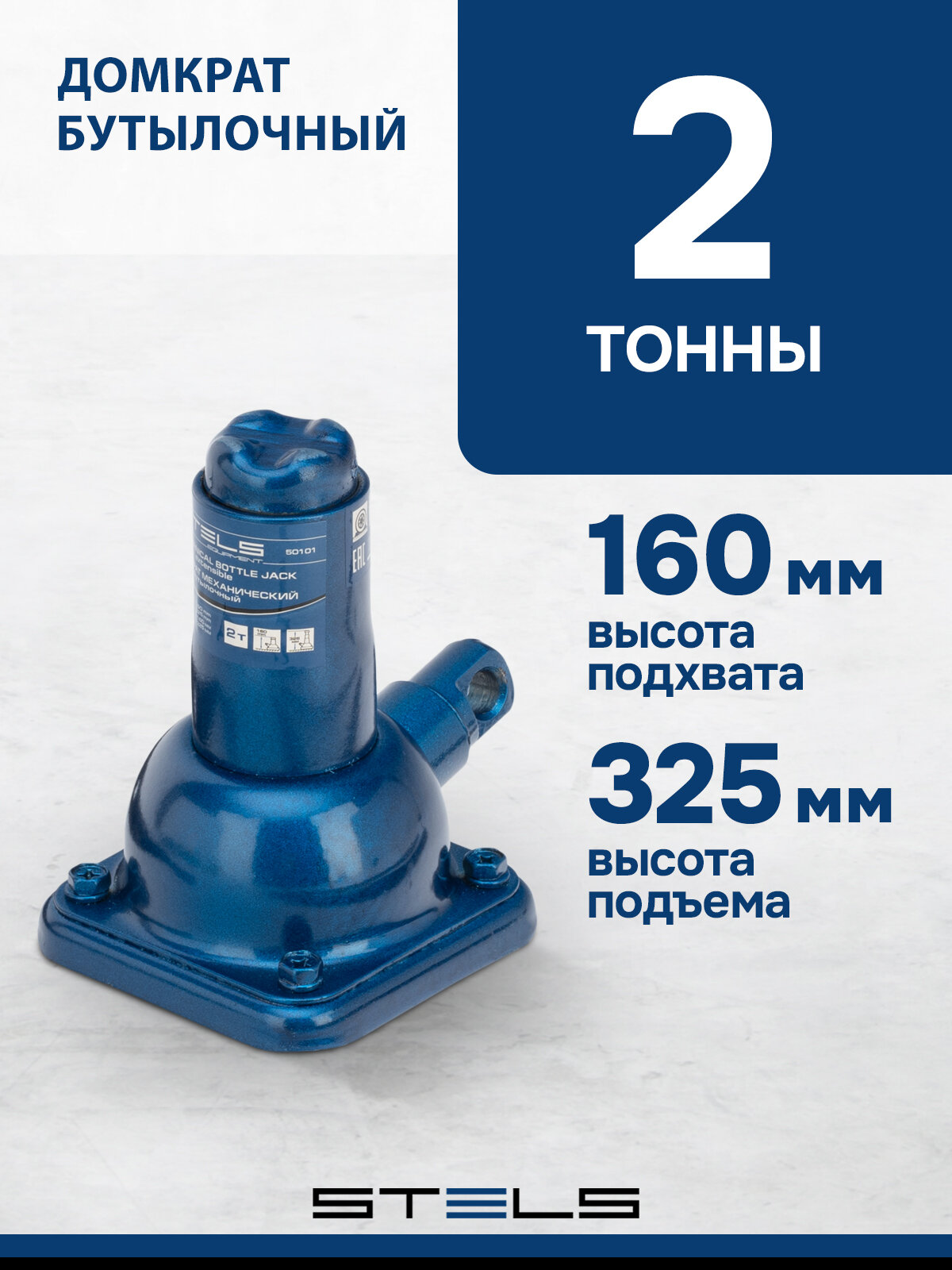 Домкрат механический бутылочный STELS EQUIPMENT STELS, 2т, 160–325 мм, 50101