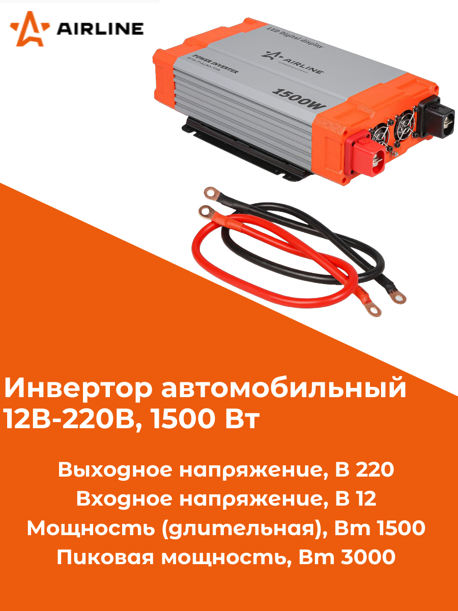 Инвертор 12В-220В, 1500 Вт 12В-220В, 1500 Вт AIRLINE арт. API150008