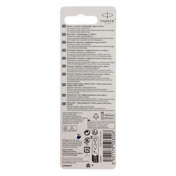 Стержень роллер Parker Quink RB Z01 (CW1950324) M 0.7мм синие чернила блистер