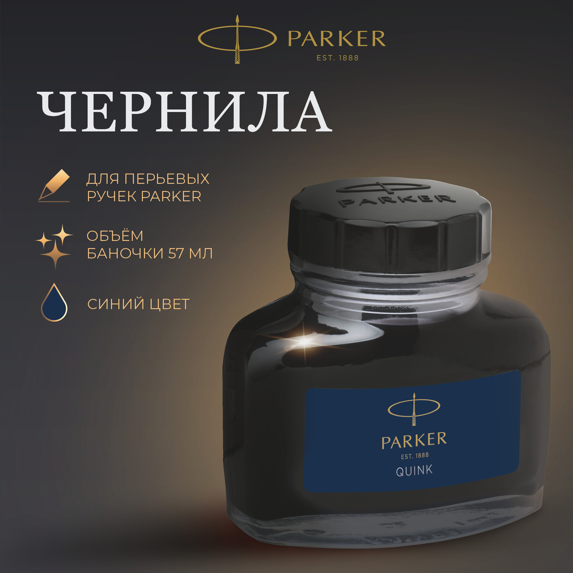 Чернила Parker Bottle Quink Z13 для перьевой ручки, синие чернила 57 мл (1950378) 7064043 .