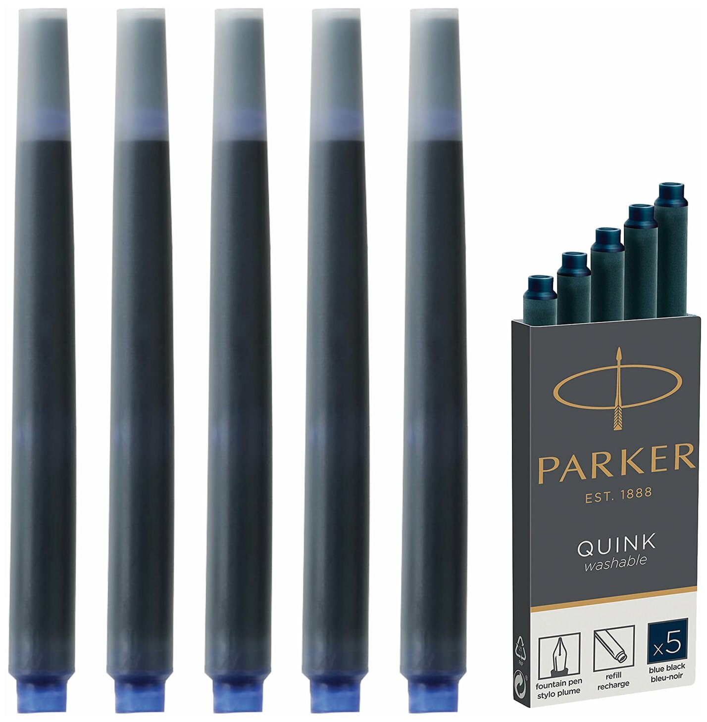 Купить Картридж Parker Quink Z11 (CW1950385) черный/синие чернила для ручек перьевых (5шт)