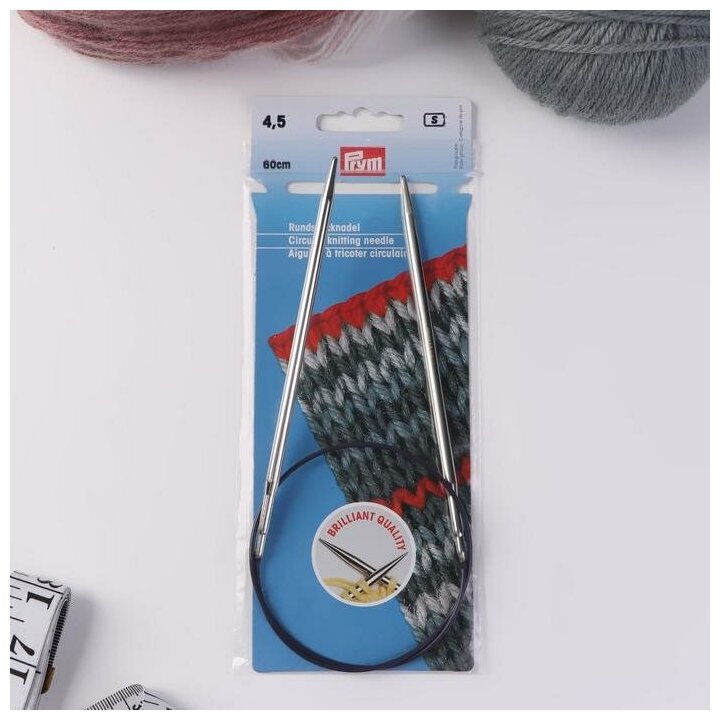 Купить Спицы PRYM Круговые, латунь, диаметр 4,5 мм, 60 см, серебристые (212152)