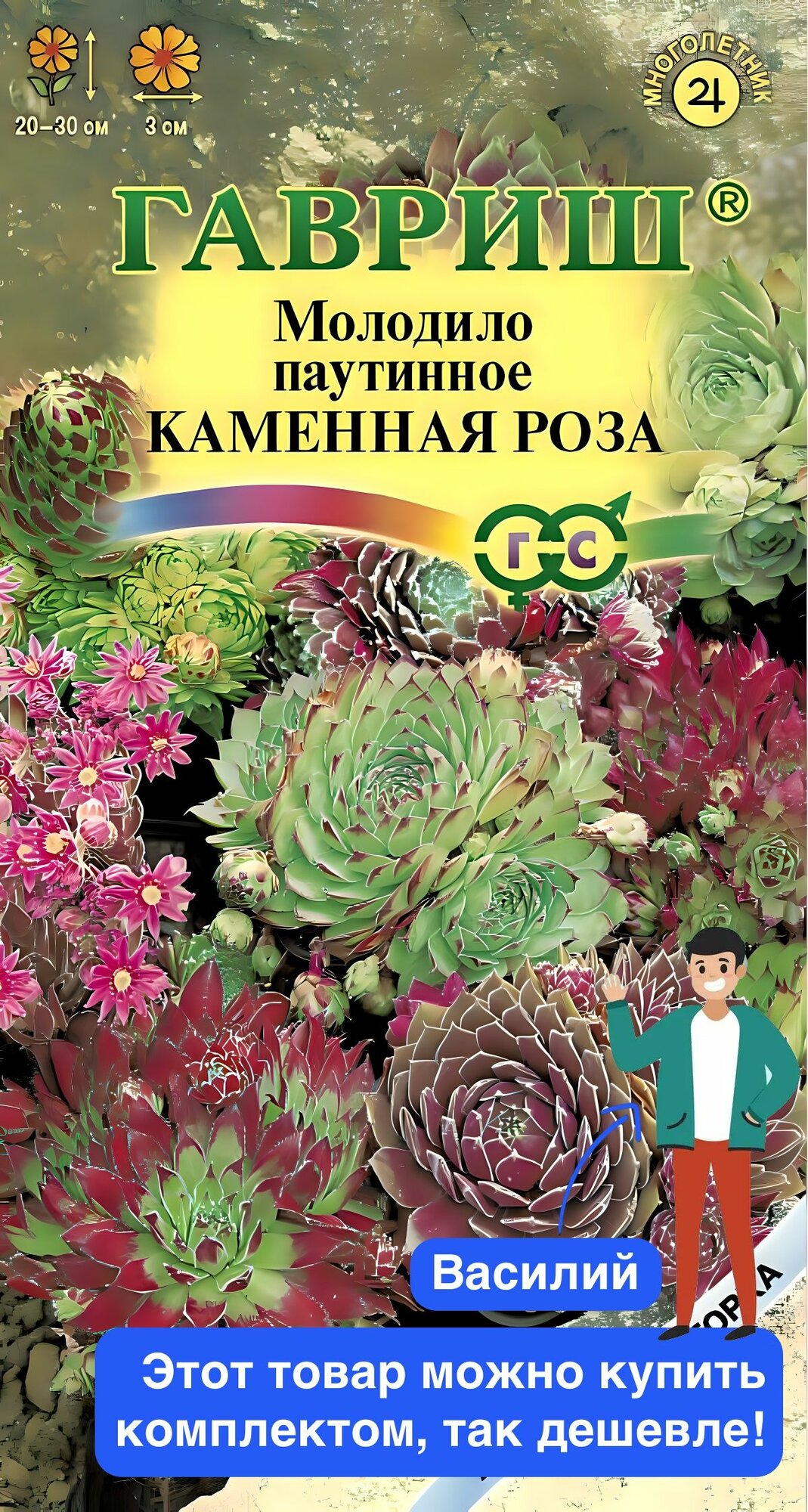 Семена цветов Гавриш "Молодило Каменная роза", 0,01 гр., серия Альпийская горка 3 пакета